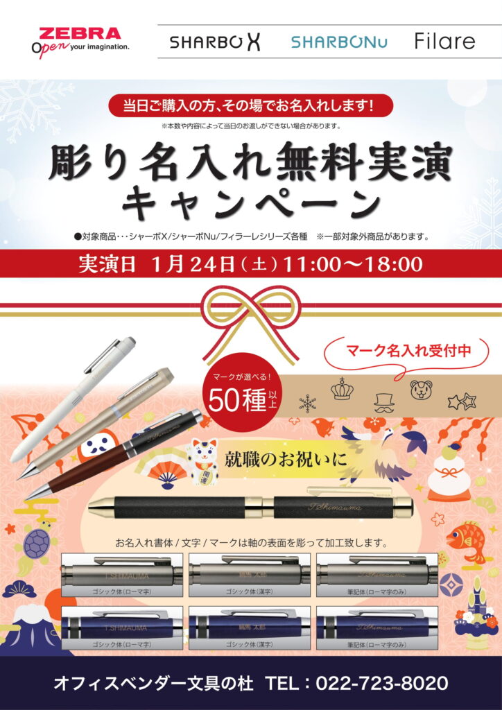1/24 文具の杜 ゼブラ彫り名入れ無料実演開催