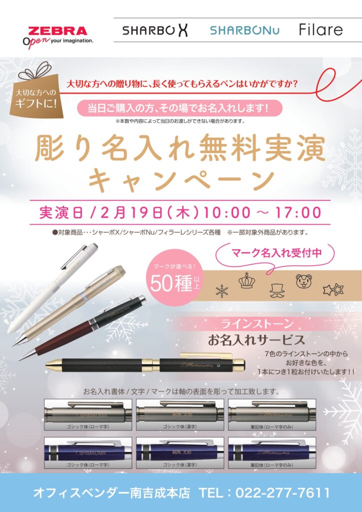 2/19 南吉成本店 ゼブラ彫り名入れ無料実演開催