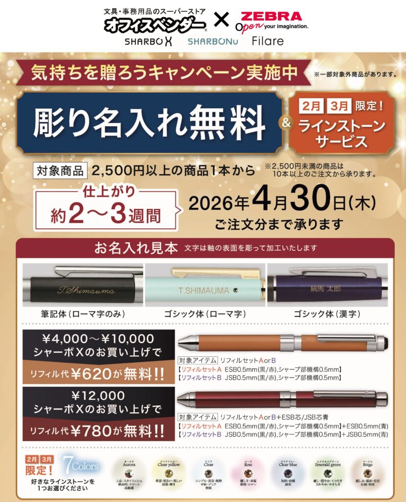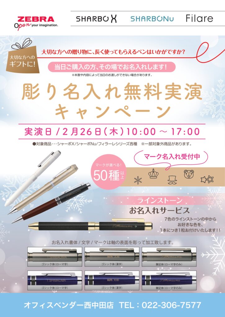 2/26 西中田店 ゼブラ彫り名入れ無料実演開催