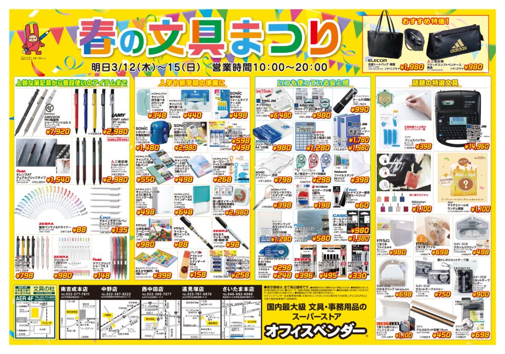 3月12日(木)~15日(日)は、「春の文具まつり」も同時開催!