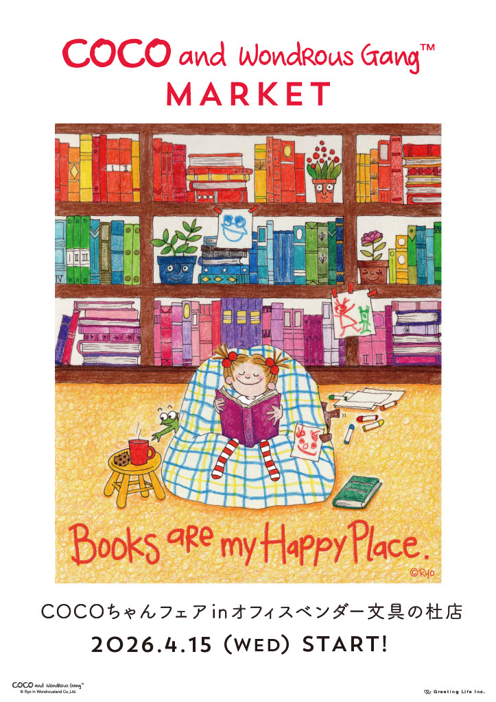 イラストレーターのサカモトリョウさんが生み出した愛くるしいキャラクター「ココちゃん」の文具や雑貨を期間限定にて販売いたします。